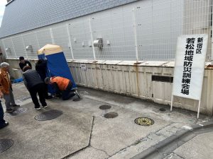 11月15日富久小学校にて避難所運営の訓練を行いました。 仮設トイレ、炊き出し、AEDの扱い、ほかペットケージや女性への配慮、段ボールベッドの設営など、避難所に必要な機能の立ち上げ、運用について訓練を実施しました